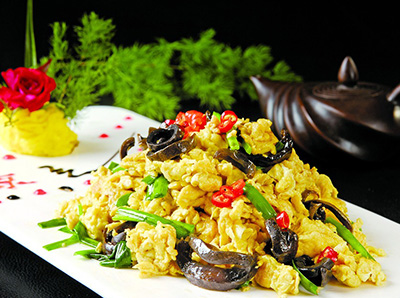 2. 坐锅点火倒入油,待油温三成热时下姜片炒出香味,放入银耳和木耳