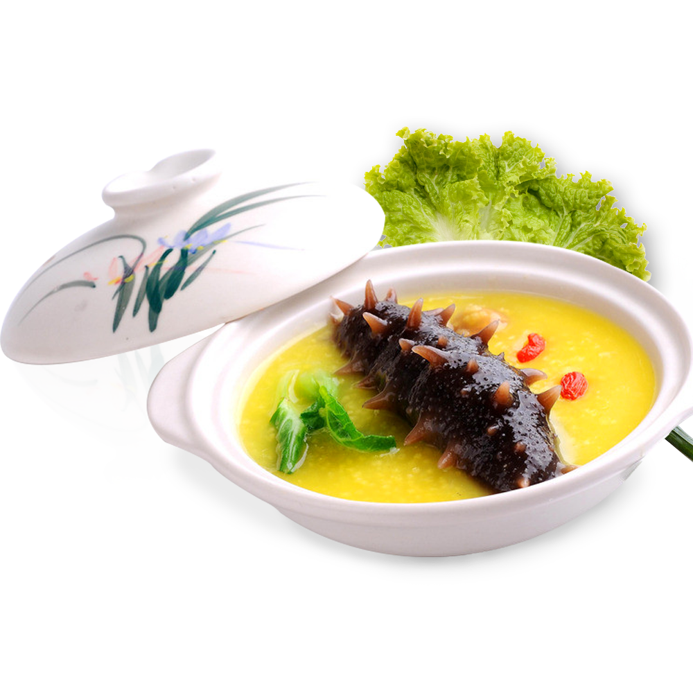 3、将自然解冻的海参及枸杞倒入小米粥中。